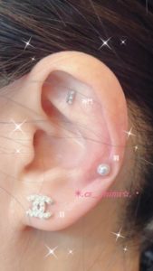 耳のツボにジュエリーを貼っていきます💎